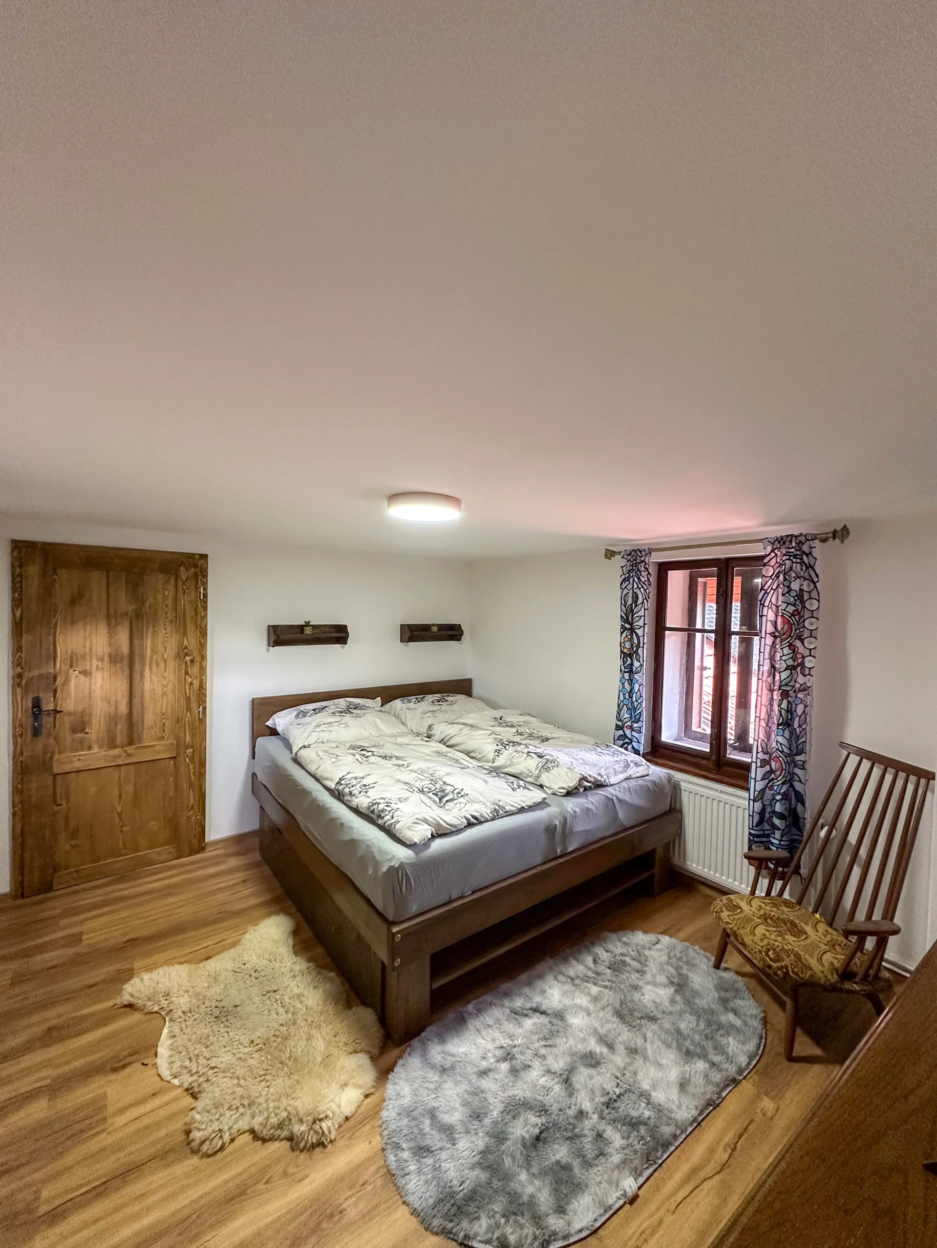 manželské postele, jednolůžko, kvalitní matrace, noční stolky, lampičky, šatní skříně, komody, věšáky, povlečení, přikrývky, polštáře, náhradní lůžkoviny, dekorativní polštáře, zatemňovací závěsy, TV, možnost větrání, vchod na balkon